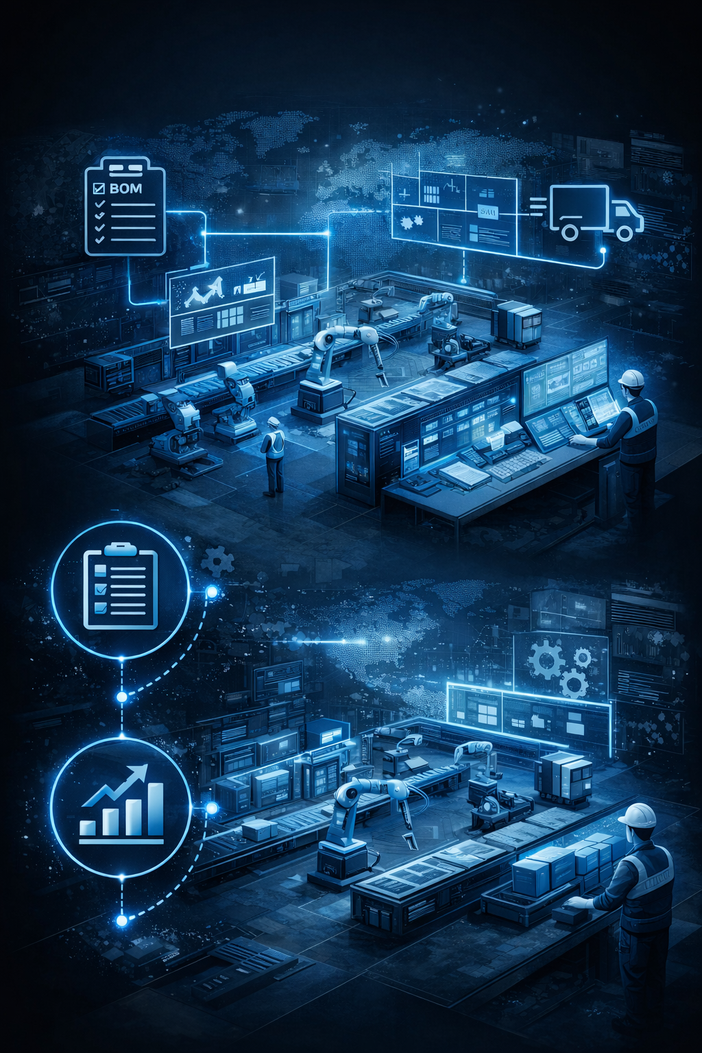 Planlama ve Operasyonel Yönetim Otomasyonlarımız; sipariş verisini tek merkezde toplayarak üretim planlama, ürün ağaçları, satın alma ihtiyaçları, üretim–montaj akışı, boya planı ve sevkiyat süreçlerini aynı veri yapısı üzerinden yönetilebilir hale getirir. İş emirlerini ve operasyon adımlarını otomatik oluşturur, kapasite ve termin yükünü görünür kılar, revizyonlara bağlı değişiklikleri tüm birimlere eş zamanlı yansıtır. Böylece ekiplerin manuel takip yükü azalır; gecikme, eksik malzeme, yanlış planlama ve kalite kaynaklı operasyonel aksaklıklar minimuma iner.
